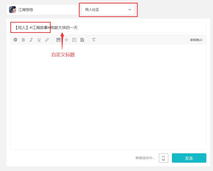投稿至【同人社区】子版块,帖子前缀要求是【同人】#江湖故事#+自定义标题,才可以参与活动;