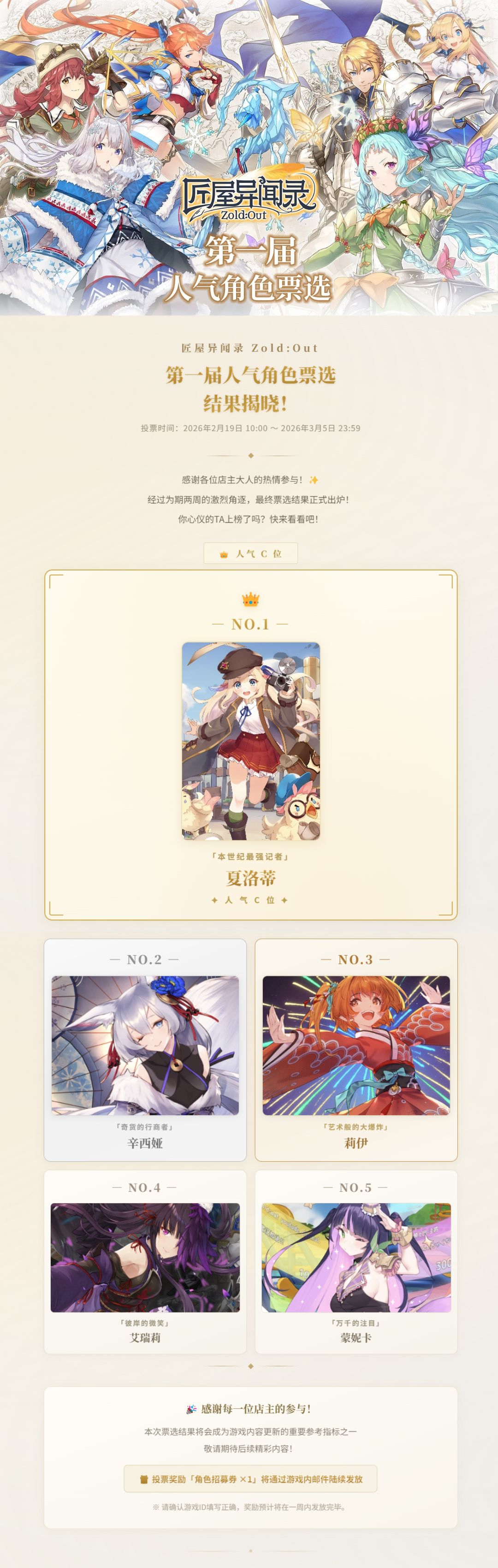 【票选活动】《匠屋异闻录》人气角色票选活动结果揭晓!