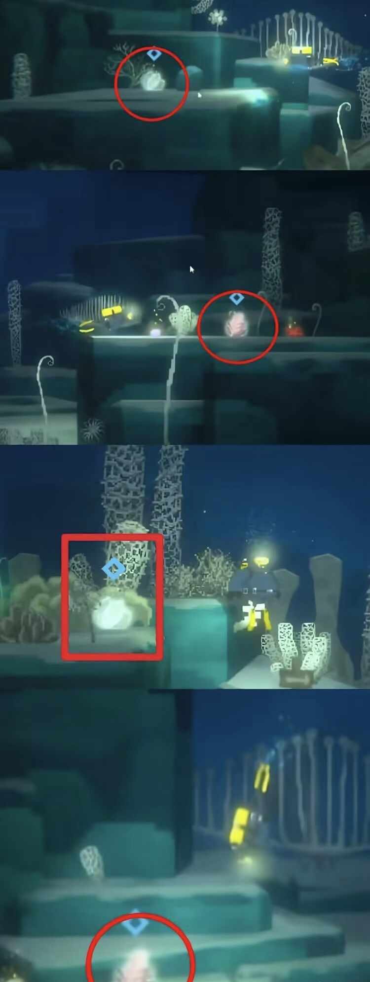 珊瑚均带有蓝色标记,可根据颜色区分。找寻完毕后交给班乔制作料理即可。