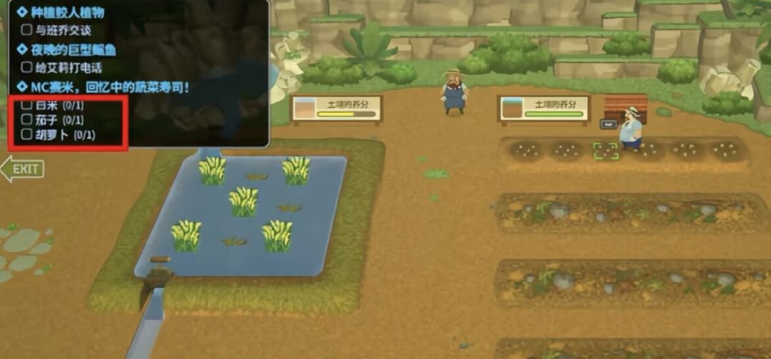 5. MC塞米,回忆中的蔬菜寿司!需要白米、茄子、胡萝 。跟着奥托的指引,可以获取茄子和胡萝卜种子,种下后等待成熟,收取后制作成蔬菜寿司即可。