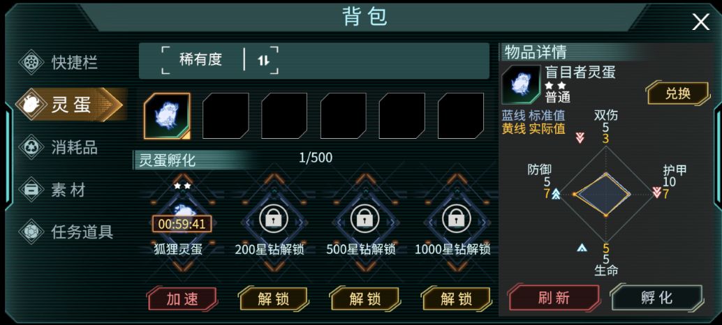 前期任务打蛤蟆,会获得一个新手灵蛋,需要点击头像-活体意识里,将它孵化,孵化完成后取出来。