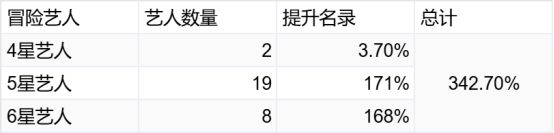 三、冒险名录上限说明由于冒险体系的皮肤名录与上阵艺人没有关系,不建议获取,花费的资源比较多,所以这里只介可以提升冒险名录的艺人,以下是艺人可提升的最高名录:
