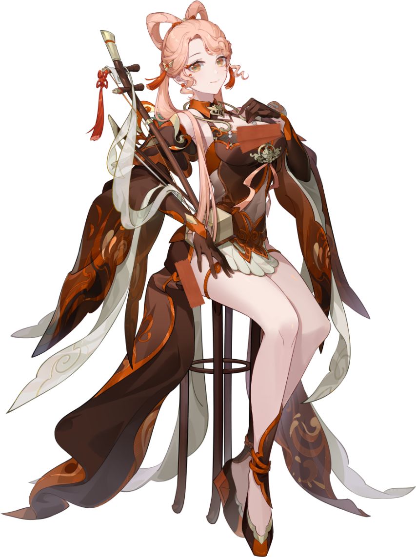 她是奚琴修炼化形而成的琴妖,善奏吉祥天音曲。每当琴音响起,空中花雨飘落,燕鹊闻声而来,五彩祥云汇聚。她喜欢被弹奏、用音乐为人们带来幸福欢乐,却阴差阳错在一位盲眼乐师手中奏出苦情曲,听闻琴音之人,不是染上疫病,就是因意外、忧愁困苦而亡。她不愿再被盲眼乐师弹奏、为他人带来苦难,终于一日,自断琴弦弓弦,不愿再为他发出一丝声响。