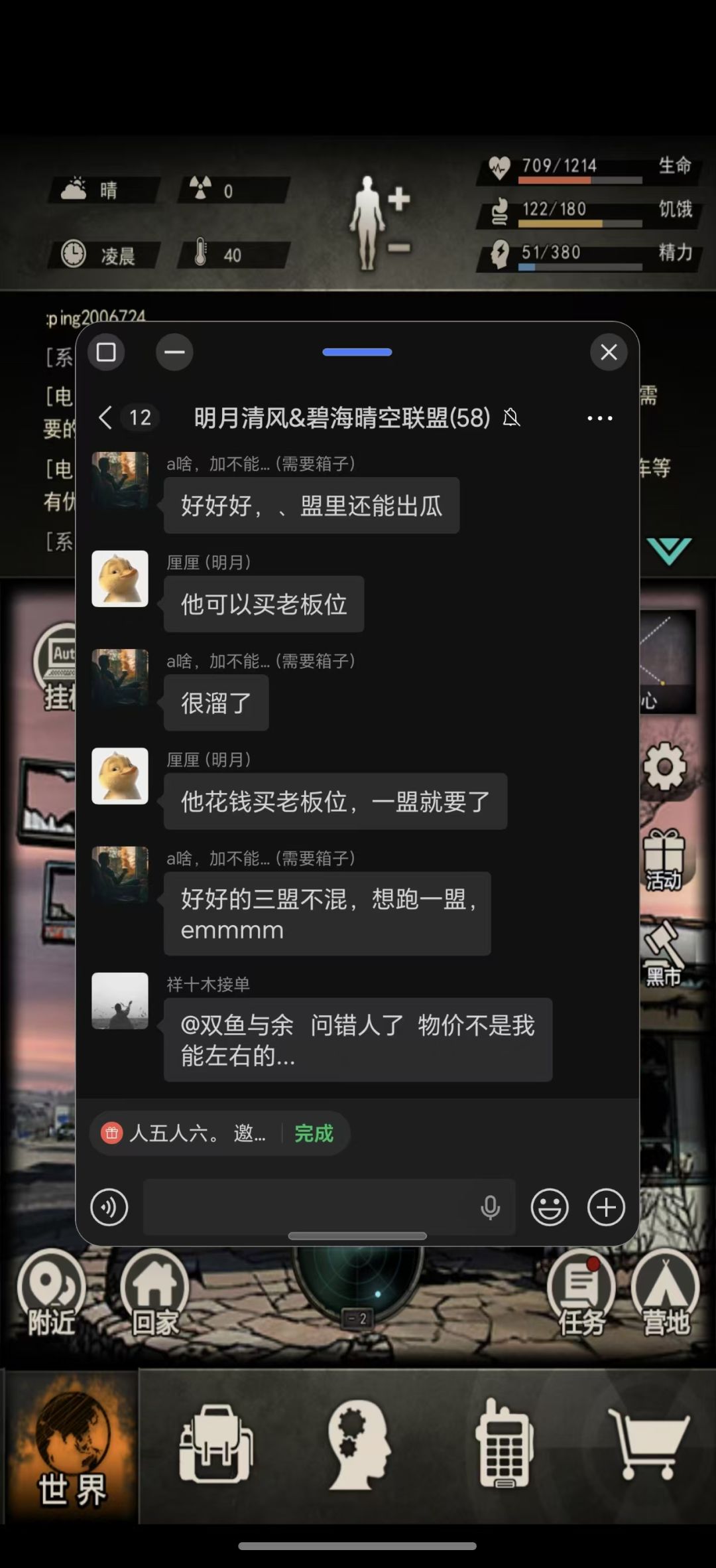第五,你们有你们的逻辑物以聚类人以群分,各执一词,各抒己见没问题。但是你们对我的嘲讽以及恶语相向总要给我一个说法吧。一个盟围攻我一个人。还说我当时第一时间给你们盟挂出来了。我只是想问清楚事情到底是什么样的。我到底做错了什么。
