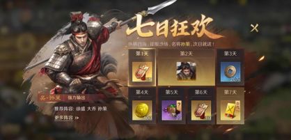 七日狂欢活动更是让人眼前一亮。在这七天的时间里,游戏会陆续赠送橙将孙策和自选战法包。孙策的出现,就像是给你在战场上派来了一位勇猛的将军,能带领你的军队冲锋陷阵。