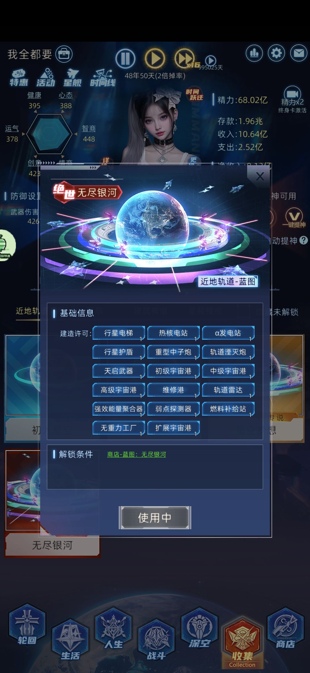。然后玩着玩着又感觉不对了,群里大佬说普通困难狗都不玩,要玩就玩噩梦。。。好家伙,上星舰礼包!青龙+10登场!噩梦走起。又是1000下了水。元宵节是个好日子,摸索了15天,总算看到了游戏的精髓,时间线。今天第16天,成功造出了第一只时间线船。好家伙。。。瞬间打开了时空门。。。抢劫一时爽,一直抢劫一直爽。兄弟们我已经把路踩出来了,后续再看。玩了半个月花了5000总算玩明白了