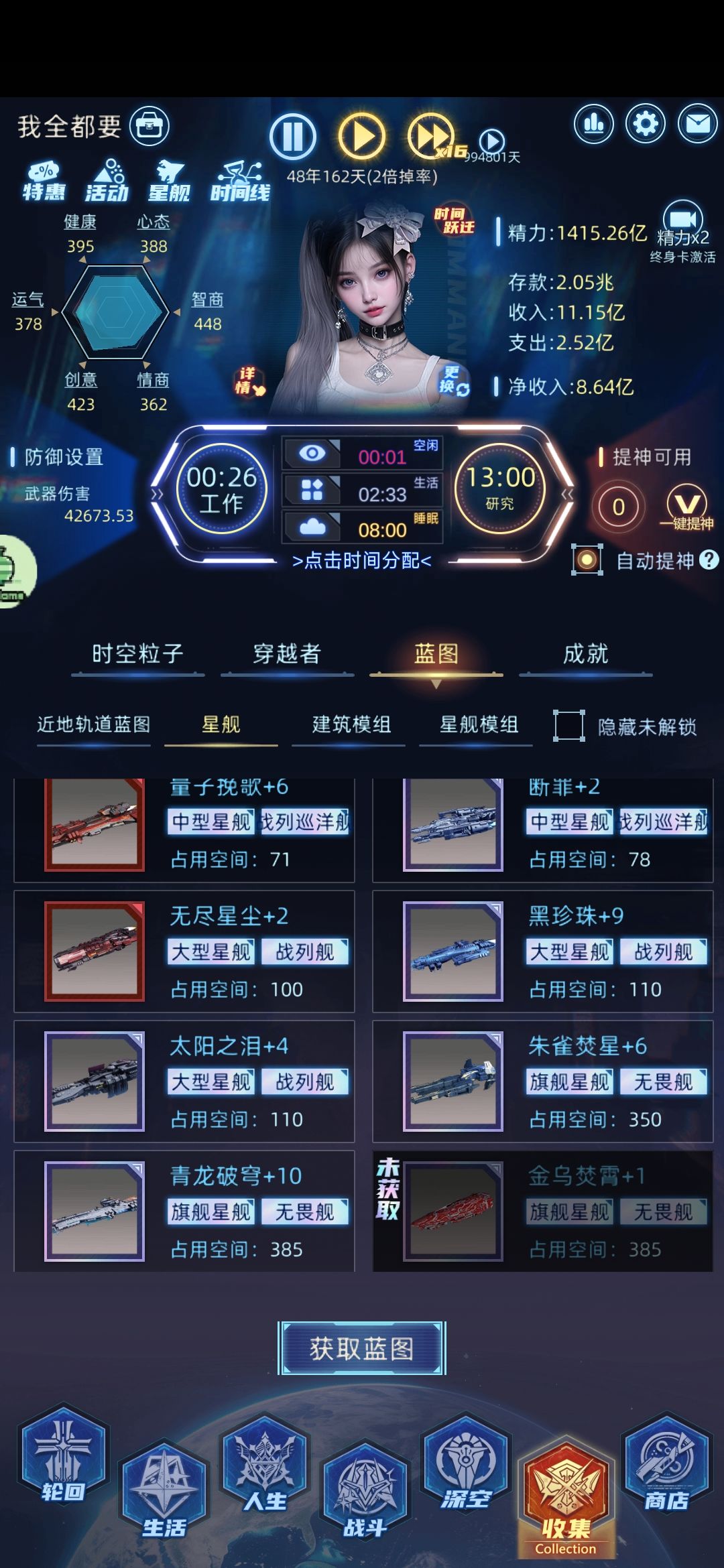 。然后玩着玩着又感觉不对了,群里大佬说普通困难狗都不玩,要玩就玩噩梦。。。好家伙,上星舰礼包!青龙+10登场!噩梦走起。又是1000下了水。元宵节是个好日子,摸索了15天,总算看到了游戏的精髓,时间线。今天第16天,成功造出了第一只时间线船。好家伙。。。瞬间打开了时空门。。。抢劫一时爽,一直抢劫一直爽。兄弟们我已经把路踩出来了,后续再看。