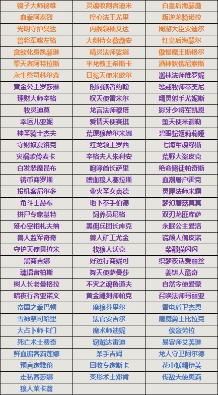 本次更新结束后,荣耀竞技模式可用英雄更换,名单如下:
