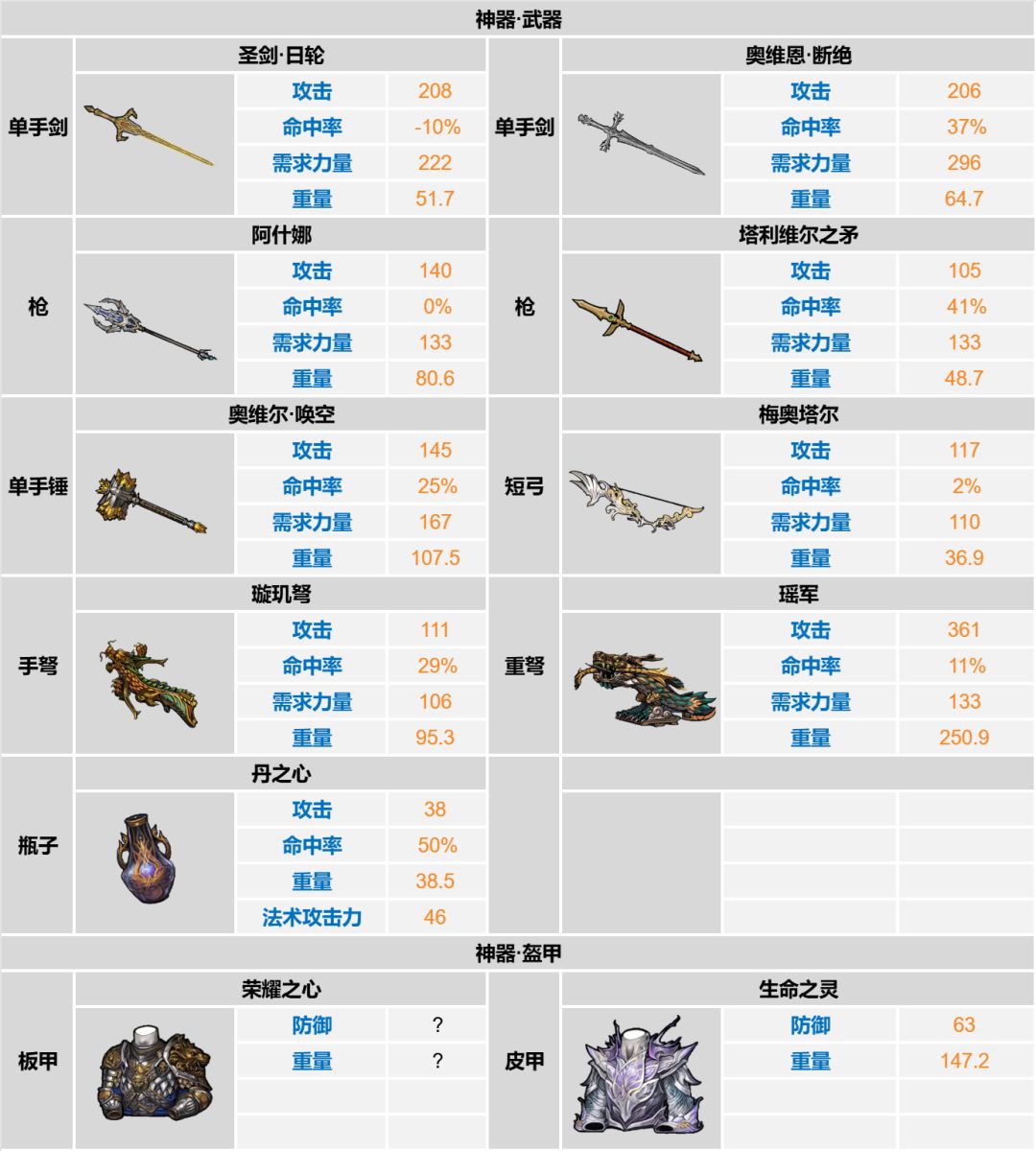 1.额外加入不灭之誓、瓦提肯流盾、改造属性,方便比对,日影盾、神器书感谢评论区大佬@aeternitas的失窃补充;