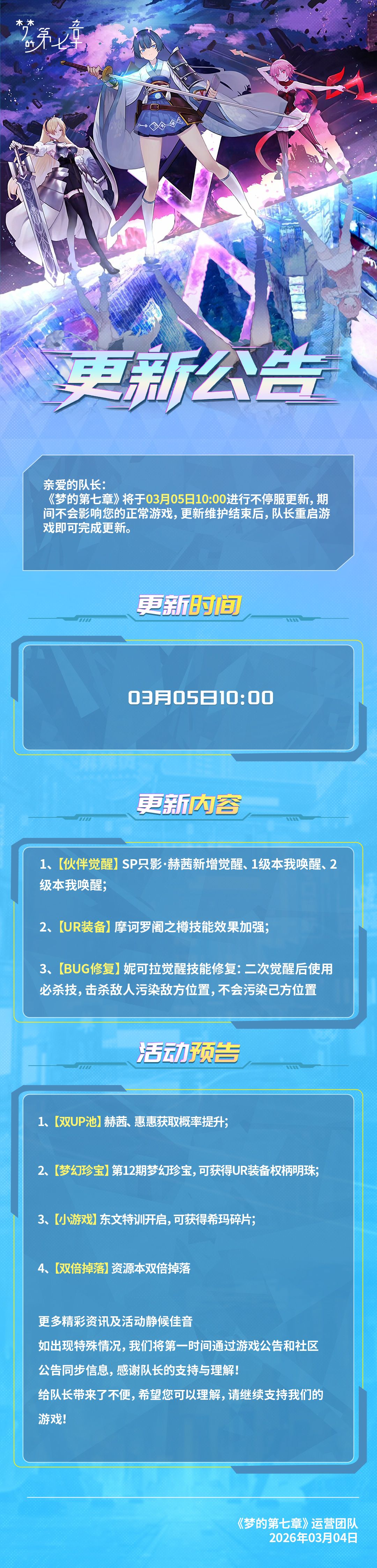 《梦的第七章》3月5日不停服更新公告