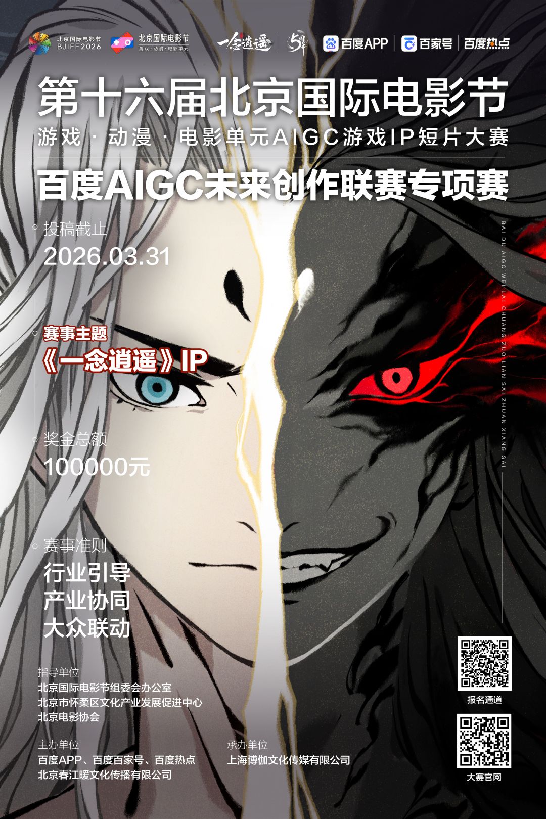 “第十六届北京国际电影节游戏·动漫·电影单元AIGC游戏IP短片大赛x百度AIGC未来创作联赛S3”征集开启!评委由北影节游戏·动漫·电影单元特别邀请,大赛总奖金10万元,用AI与游戏IP碰撞出创作火花!