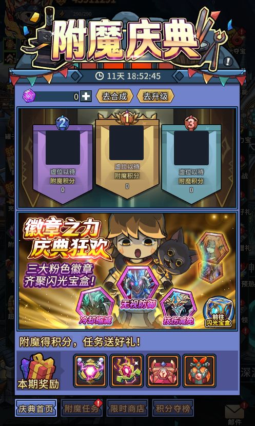 1、活动期间,进行附魔徽章的合成、升级、或者获得新的神话附魔徽章(拆卸不算新获得)都可以获得积分