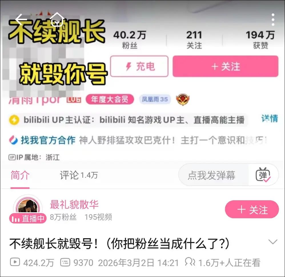 直播间立了规矩,不是舰长就毁号,你自己不续费怪谁?这番硬刚直接把火拱到新高度。