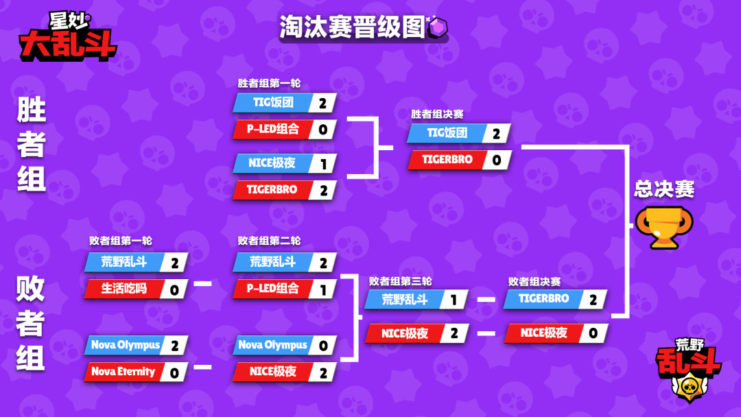 TIGERBRO则在败者组中绝地反击,YK的塔拉大招逆天改命,帮助TIGERBRO再度击败NICE极夜;而在最终的总决赛中,TIG饭团以逸待劳,阿水先用塔拉和罗莎Carry,佳佳跟上用布洛克终结悬念,帮助TIG饭团登顶宝石大亨。