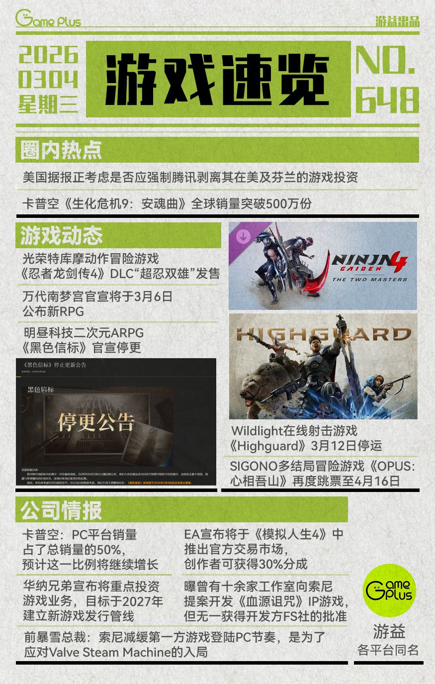 游戏行业值得关注的信息-0304
