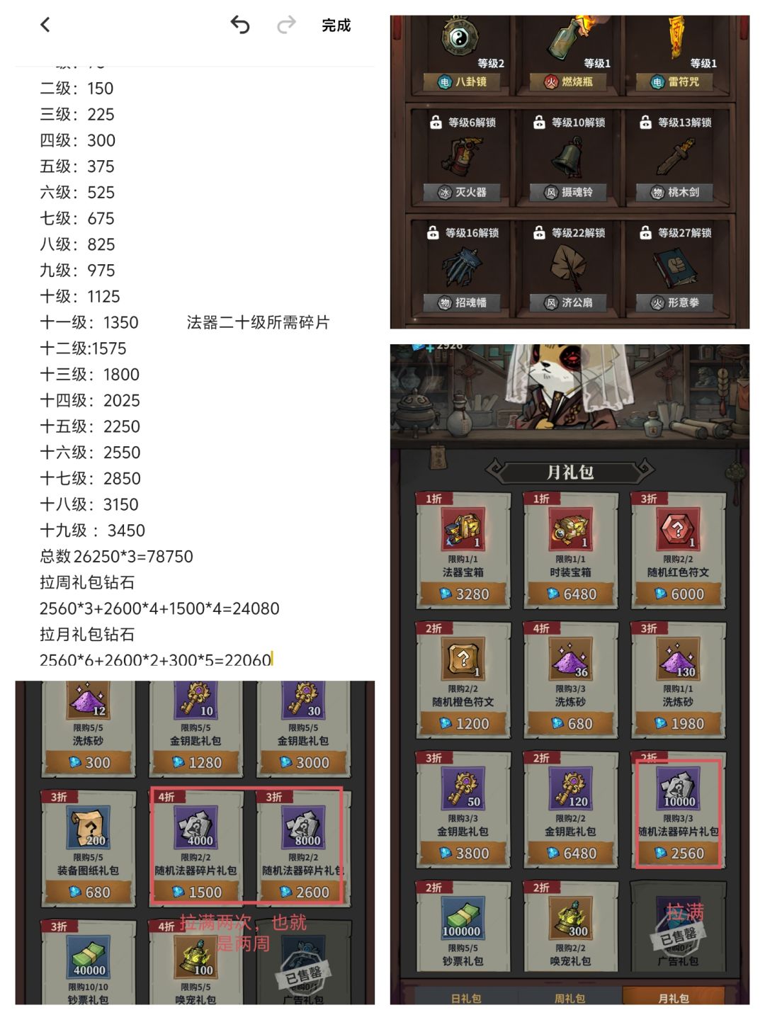 切记千万不能超过五级,因为超过五级你就会多解锁一个法器,多一个法器你就要多分一份碎片出去,超过五级就废了