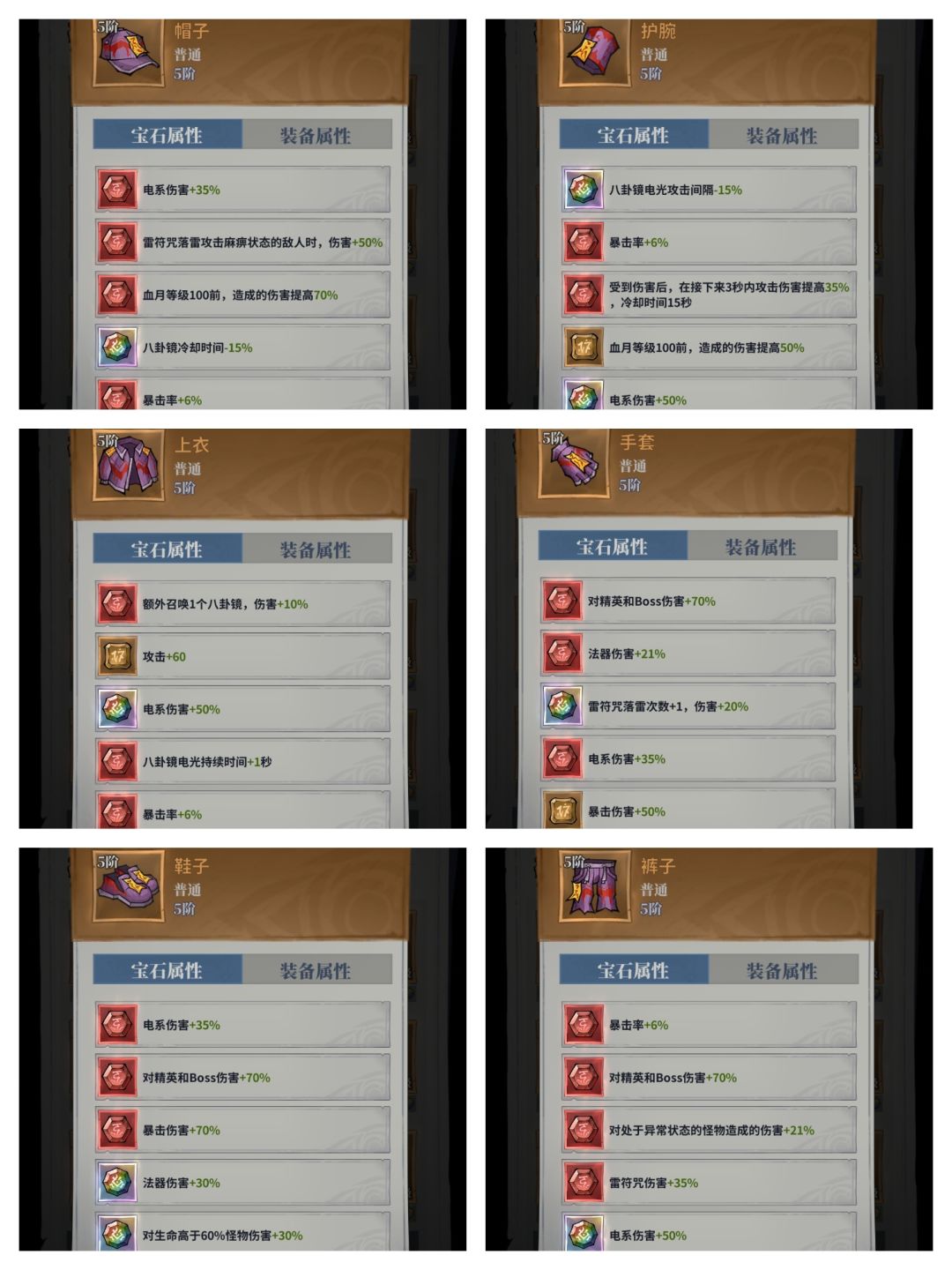 还有法器伤害是要换暴击的,目前有大佬测过之后发现法器伤害其实很拉,还不如雷系,换暴击提升暴击率正好