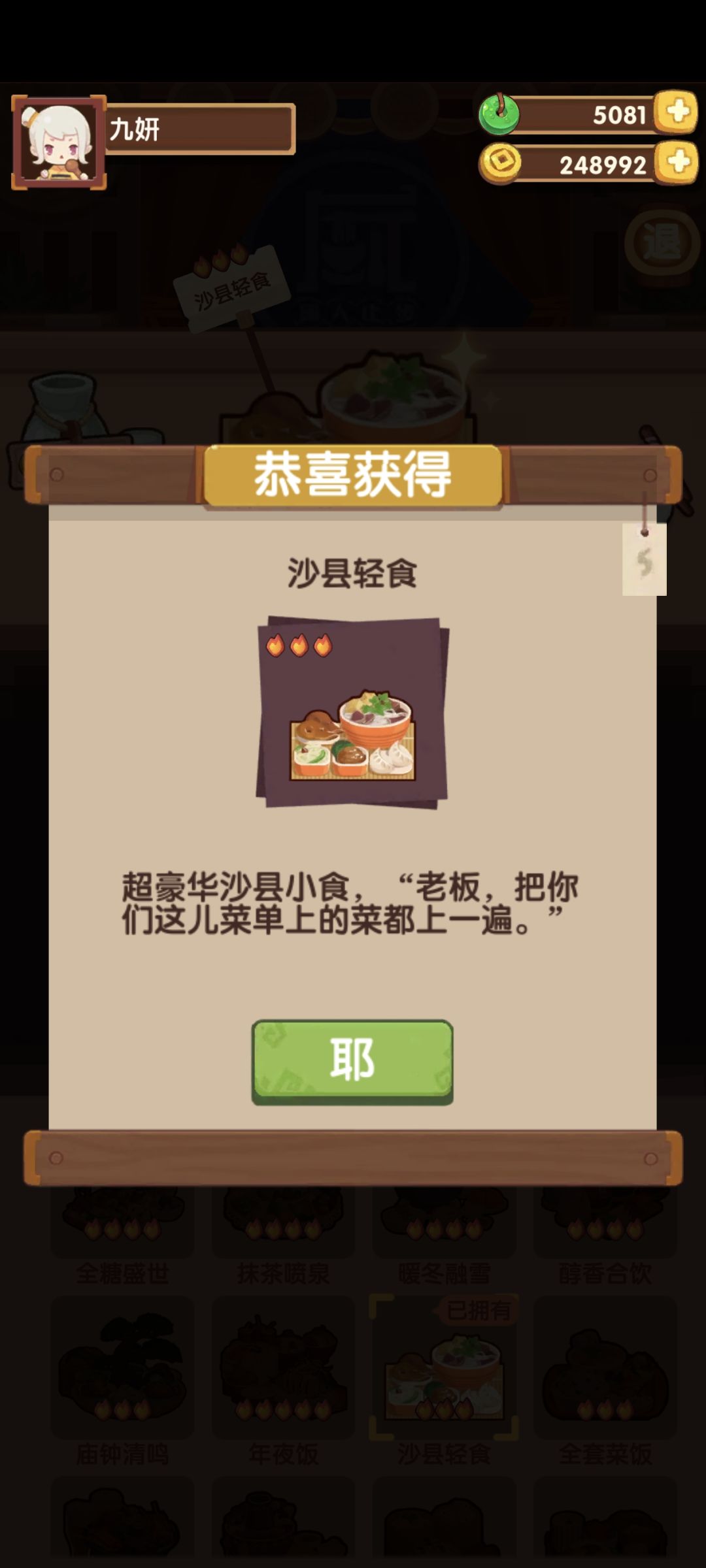 也知道我54天255了吧,我也开了后厨了吧,不知道大家的第一个后厨菜是不是都是沙县轻食呢?