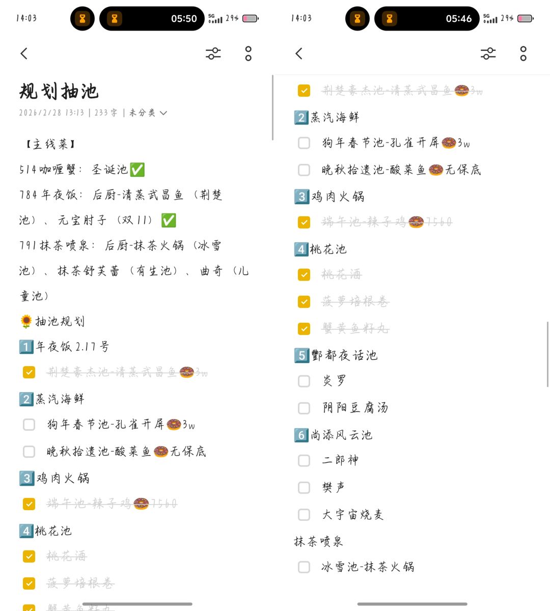 一周年前完美搞完支线任务目前主线任务507🤔📋今年目标①春节前主线到500✅️②26年实验室全部研发完[差辣子鸡]③26年后厨已有菜谱都专精✅️[未集齐]【防忘提醒】爆炒每周:周常任务✔...