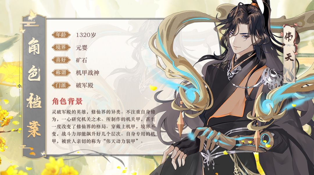 他是破军殿的英雄,也是修仙界的异类。他从不注重自身修为,一心研究机关之术。他所制作的机关甲,甚至一度改变了修仙界的格局。当他穿戴上机关甲,境界不变,战斗力却能飙升好几个层次。他所为自己打造的专用机甲,也被世人亲切的称为——“伟天动力装甲”