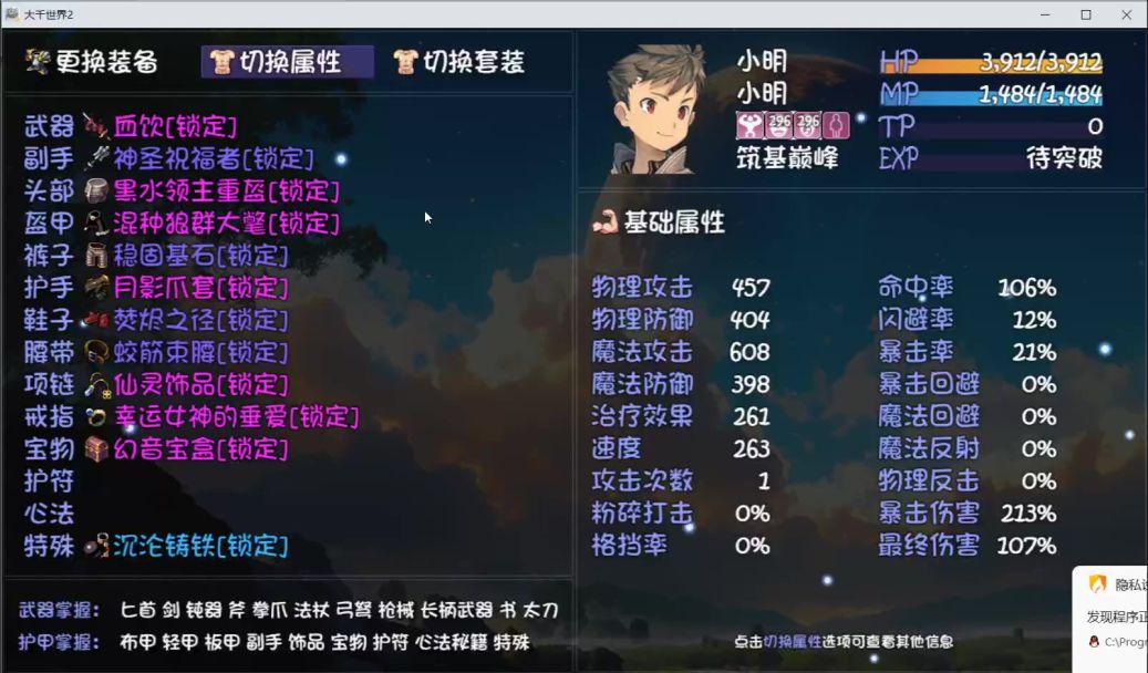 该贴属于纯整活坐牢流派,我称之为窝囊流,这个档纯属打着玩,没有提前计算过伤害,所以随时可能会因为卡流程而提前宣告完结。
