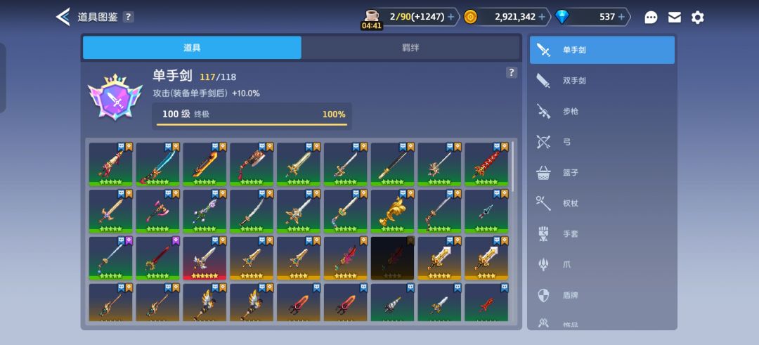 各武器10%加成吃满,卖装备的时候注意一下,别把羁绊加成的装备卖了