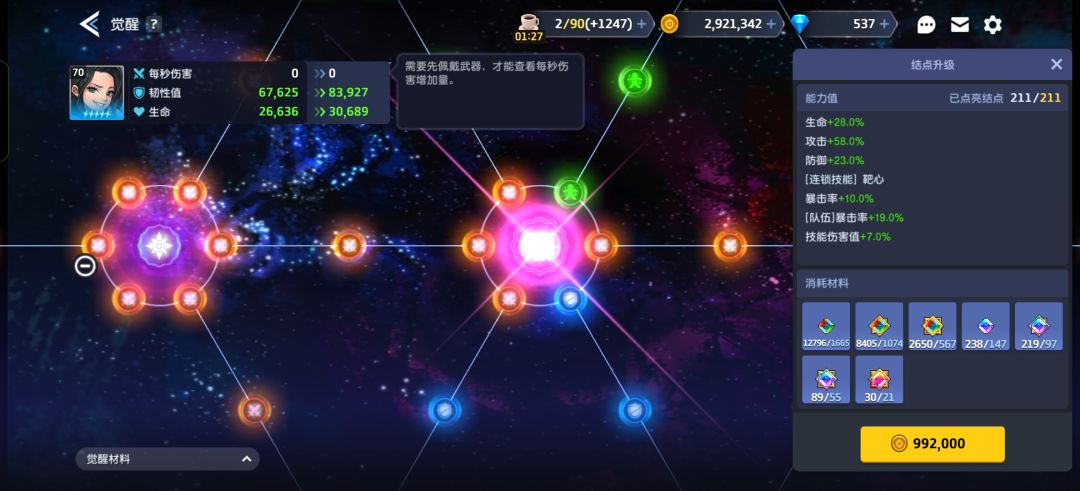 全二星角色升至5星,觉醒资源除了传说觉醒石和异面开花石外,其他种类觉醒石富裕