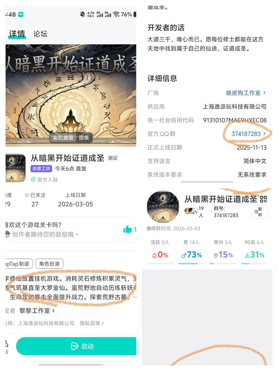 加群方法:点击游戏简介,点击官方群,会跳转QQ群,如下图所示,加群答案:TapTap