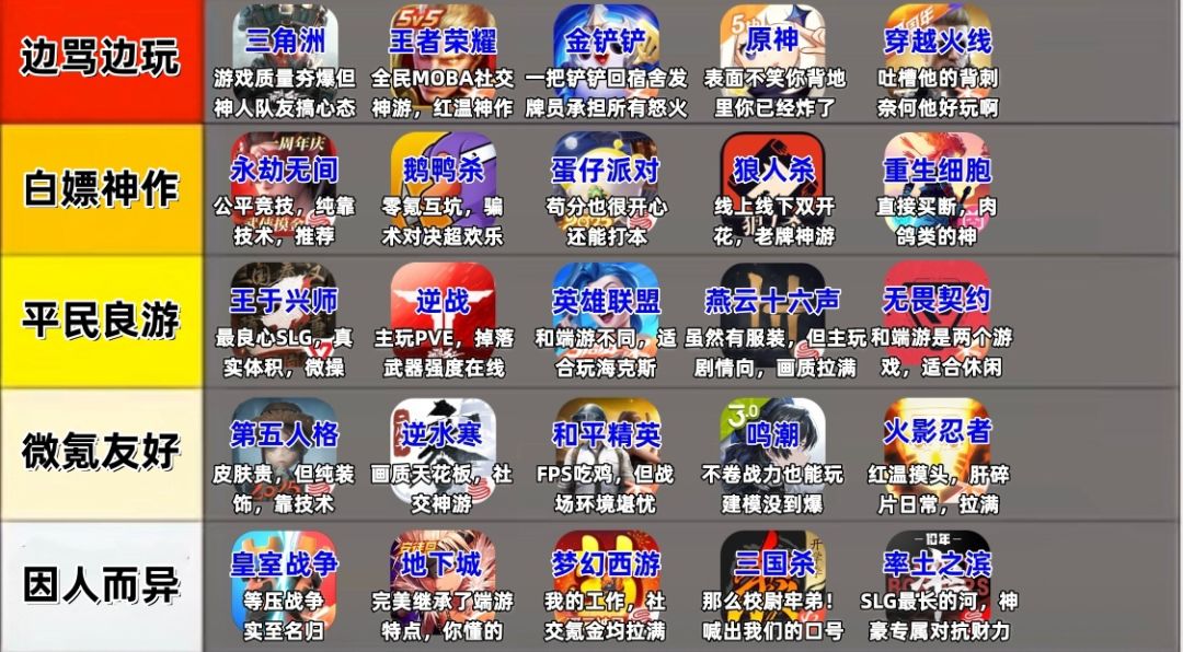 第三排是平民良游,上头,兼具游玩体验的同时,氪度也不高