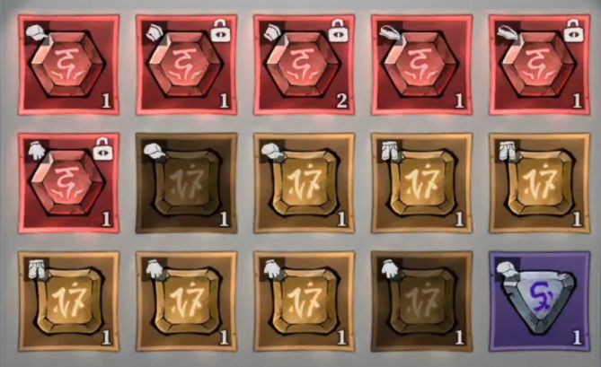 藏品分紫色、橙色、红色三个品质,主要有两类。一类是地图专属藏品,紫色的主要是提升个人血量上限,橙色的狗牌,是用来开特殊房间的,也能提升修门效率或者血量上限;另一类是容器专属藏品,加成五花八门,元素伤害、物理加成、攻击提升,还有暴击、对特定怪物增伤这种特殊词条都有。每个章节的容器藏品都不一样,点章节上面的感叹号,就能看当前地图的容器和掉落详情了。