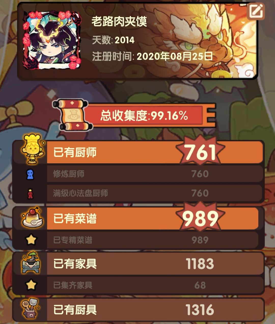 不过,对比萌新阶段的激情四射,现阶段的游戏对我来说过于寡淡了,我想核心原因就是可玩性降低了,说白了就是没得玩了。一款收集养成游戏,不能再提升再变强,实在无趣。我想有类似感受的玩家应该不在少数,这不仅包括全收集达成的老登,也有很多追求不高的咸鱼,主线、厨神、宴会、修炼、专精已经基本搞定,心法盘又懒得弄,在佛系日常的状态下逐渐摆烂,我想如果长久地处于这一阶段,弃坑退游可能也就一念之间了。