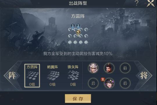 智力输出模式守军主将为中后站位,所以我们需要把主要输出武将调至中间,实现伤害灌注,站位如图下,根据自身情况调整
