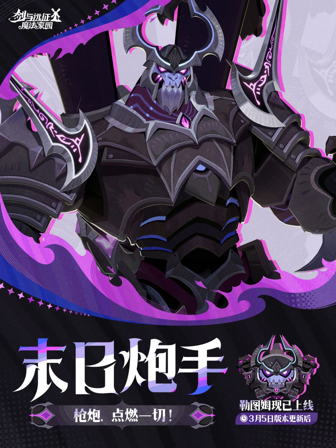 超稀有级恶魔坦克英雄「勒图姆」已于3月5日上线。