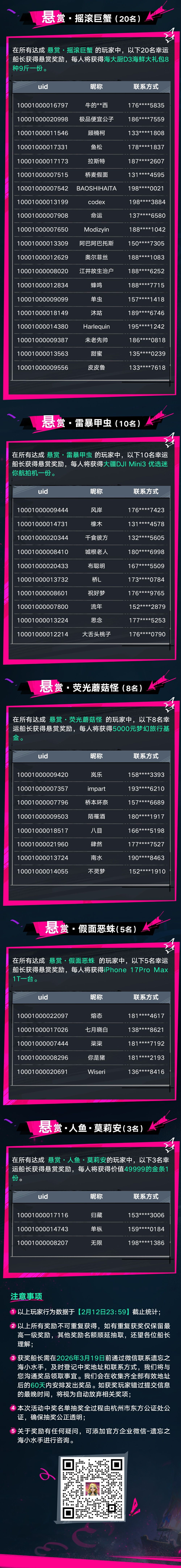 「霸主悬赏」活动最终获奖名单现已公开,请您根据公示信息,及时与我们取得联系并填写收奖信息。