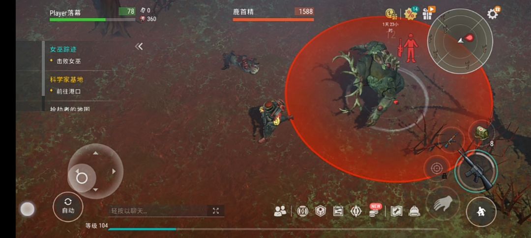女巫要用枪打,1170血量会召唤爆炸僵尸和脏啃噬者僵尸(没普攻只喷毒的蹂躏者),582血量召唤BOSS鹿首精1600血量的,女巫打完就给了大骨头。
