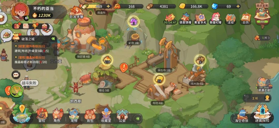村庄不同野外的危机四伏,在这里我们可以好好的休息,进行贸易,生产那污渍,做好准备后再继续出发冒险,当然,村庄里也有许多村名,村名虽然不能陪伴我们进行冒险,但是可以通过招募来找到适合我们的村民,在村里为我们提供BUFF,冒险时的保障又多了一份呢。同时在村庄里我们可以进行贸易赚取金币,同时也可以建造采石场、伐木场、布场等设施,同时可以进行升级,升级后会大幅提升我们的产量哦,设施产出可以用于据点的升级,据点升级后会有相当丰富的奖励哦~