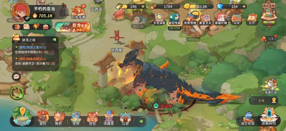 首先开局后我们可以看到,我们的地图上遍布着各种各样的危机,冒险家们需要寻找自己的搭档,不断提升实力,进行冒险,一路上披荆斩棘,跟随剧情发展(莱克这里就不剧透啦),我们会来带一片祥和之地,这里就是我们的村庄了。