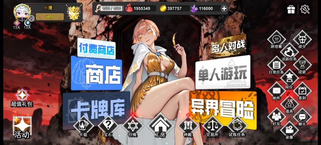 点卡牌库,出售部分重复的卡,先点击屏幕右下角出售多余卡牌,将多余卡牌出售了 。