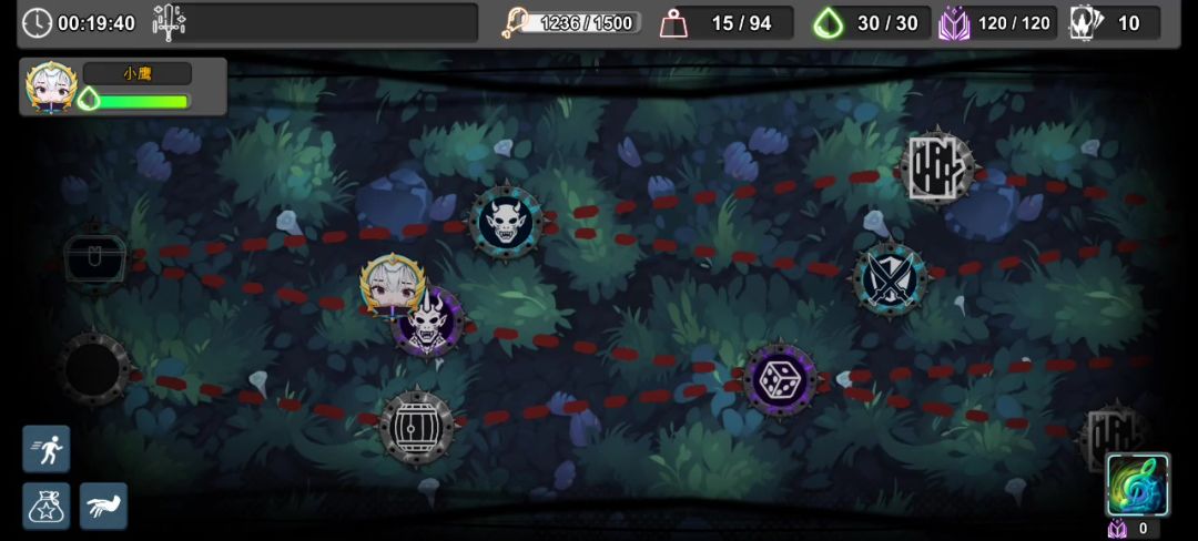 4、打小怪精英的时候不要开技能;打boss的时候,先正常出牌打伤害,第一回合直接开满一技能,能开四次,加8点攻击,注意是轮到你出牌的时候再开技能,如果是在敌方出牌时开技能,会导致技能失效