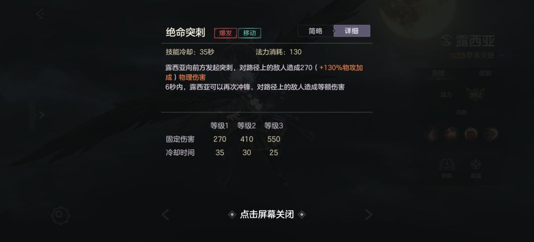 露西亚向前突刺造成伤害,数秒可以再次释放以造成等额伤害。