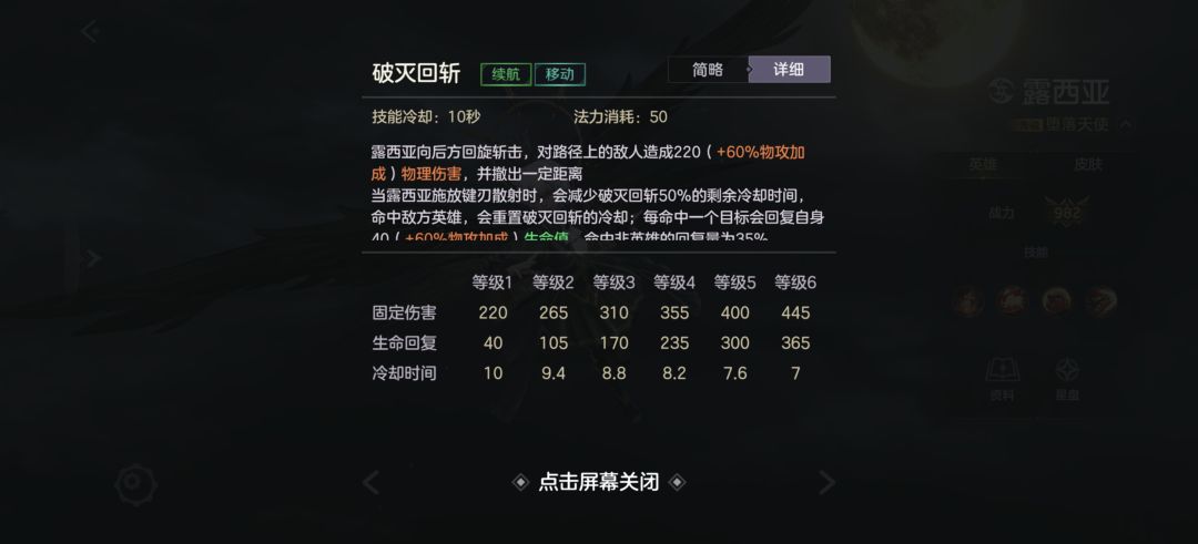 露西亚向后旋击,对路径上的敌人造成伤害。在露西亚捡起咒刃后,若伤害到了敌人则恢复自身血量,同时返还此技能当前一半cd,若命中了敌方英雄则刷新此技能。