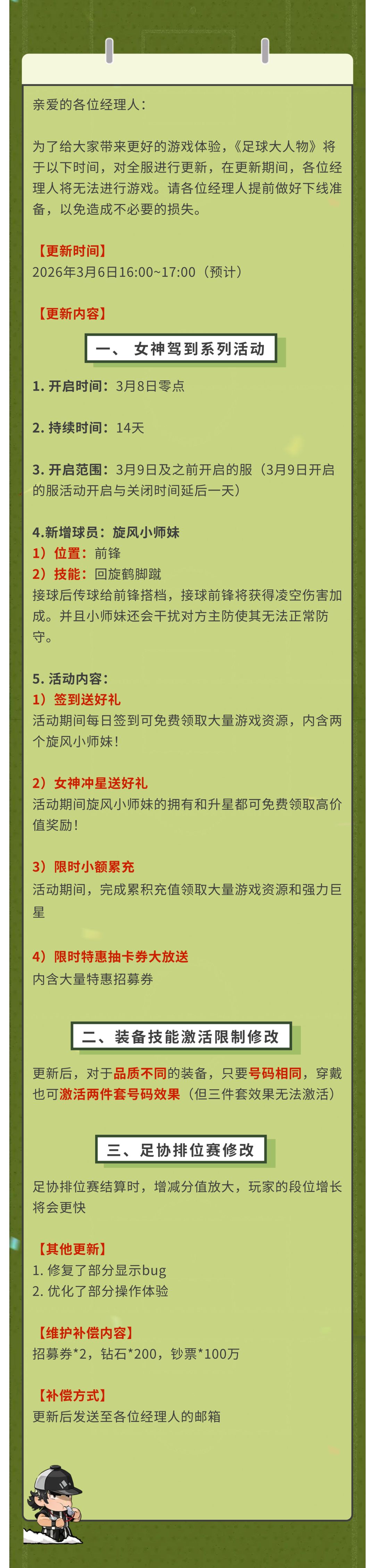 活动预告 | 新球员旋风小师妹来袭!装备技能激活限制优化~