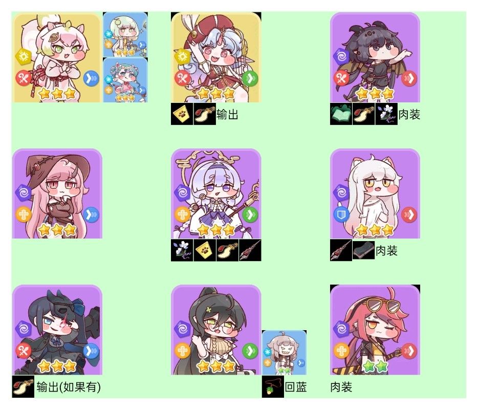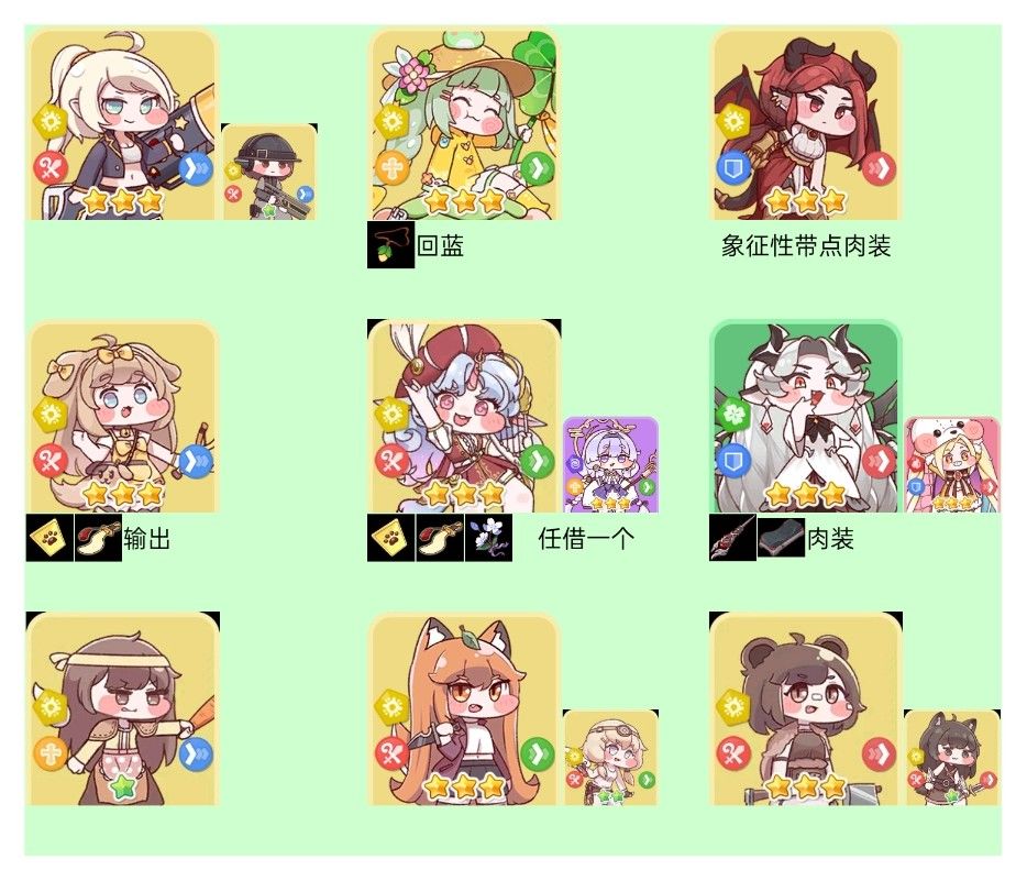 适用于中氪以上,有能力两刀内收掉15波莉莉时使用,借人位留给优米、艾皮卡。