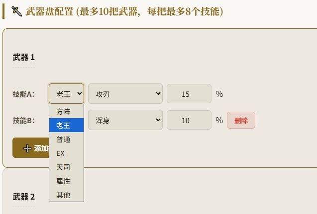 2. 添加完所有武器后选择召唤石及数值