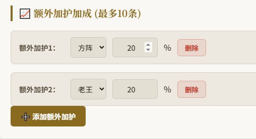 3. 填入额外加护加成(如老王角色﹑机神角色等技能)