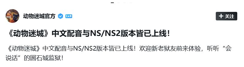 《动物迷城》官方今日正式宣布,游戏中文配音与Nintendo Switch、Switch 2 双版本现已全平台上线,邀请新老玩家重返圆石城监狱,体验沉浸式有声越狱冒险。