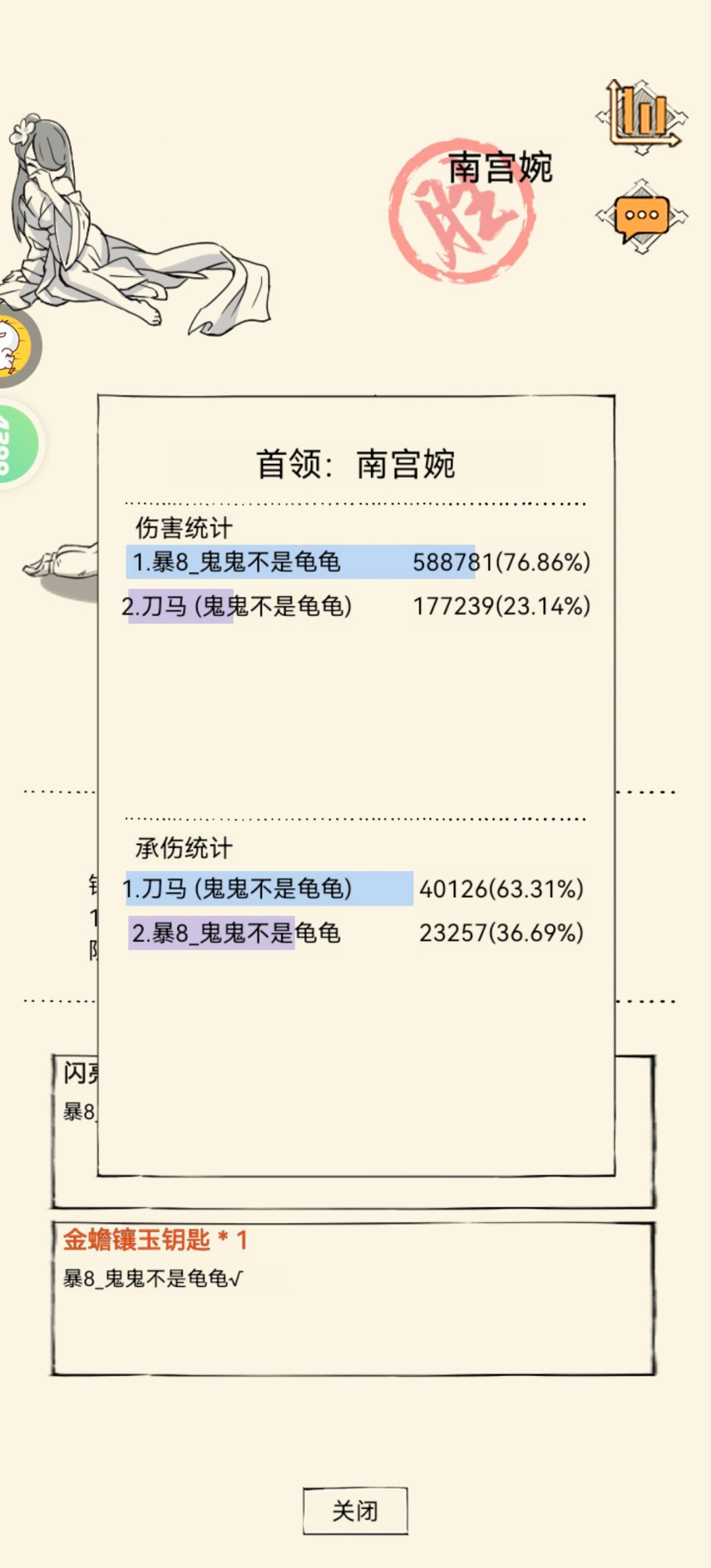 今天来晚了,没混到地狱,就想试试看,谁知道4破5防半套玄铁的21居然单刷了,太感动了。刀马哥太强了,直接少一个猴裂。