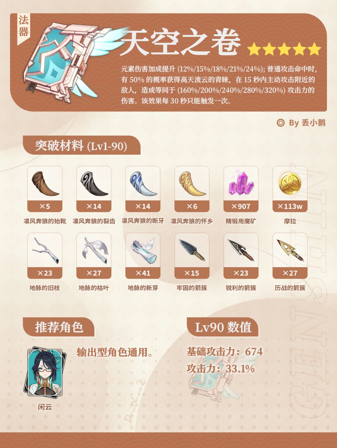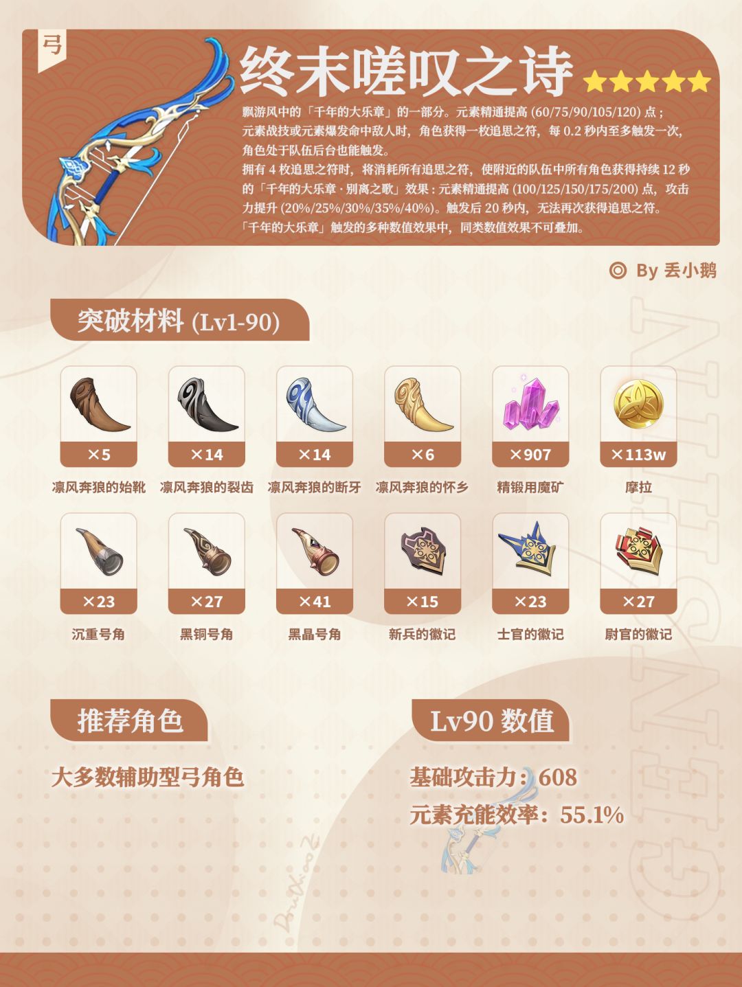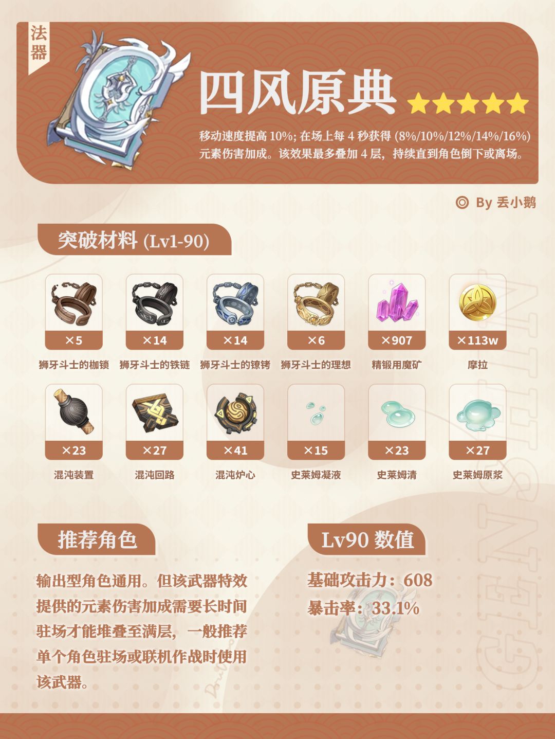 为你带来原神月之五「晨风之诗」Up5星武器突破材料~