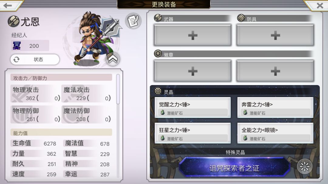 尤恩是最佳锤架子,因为只有他能带全能之力<眼镜>,如果是三灵晶槽,可以舍弃奔雷之力<锤>