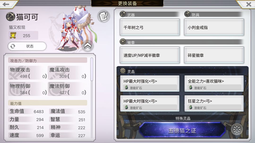 ③徽章:熊妹、雷猫猫、炼金携带高力量徽章,各类力量徽章、狂战士徽章、托托力量徽章(HP)等均可;猫可可和轮换角色携带高速度徽章,各类速度徽章、托托速度徽章(HP&MP)等均可。